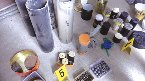 وفي سياق متصل، أسفرت أعمال البحث والتحري عن ضبط عدد من المواقع التي تستخدم في تصنيع وتخزين العبوات المتفجرة لاستخدامها في تنفيذ الأعمال الإرهابية، وصُنفت المواد التي تم ضبطها، ومن أهمها: حوالي 42 كيلوجراماً من مادتي C4 وTNTشديدة الانفجار، وأكثر من 757 كيلوجراماً من مادة نترات اليوريا، وأسلحة كلاشينكوف ومسدسات وطلقات نارية وصواعق، وعدد من القنابل المغناطيسية واليدوية، وعدد من العبوات المضادة للأفراد والمركبات المصفحة وخارقة للدروع، وعدد من المركبات التي تم استخدامها في عمليات نقل المواد المتفجرة، وأربع قذائف متشظية، يتم إطلاقها بواسطة قاذف الـRPG وتستخدم لتدمير العربات خفيفة التصفح وتلحق إصابات مميتة بالأفراد واتضح بعد فحصها من قبل المختبر الجنائي، تطابق ثلاث منها في المواصفات مع عبوة PG7 التي يتم إنتاجها في المصانع الحربية الإيرانية.وقد باشرت الإدارة العامة للمباحث والأدلة الجنائية، اتخاذ الإجراءات القانونية المقررة، وتم إحالة المقبوض عليهم إلى النيابة العامة./ وفقا للجزيره – جمال الياقوت