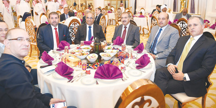 رعاية معالي وزير الثقافة والإعلام رئيس المكتب التنفيذي لمجلس وزراء الإعلام العرب الدكتور عواد بن صالح العواد، نظمت وزارة الثقافة والإعلام مساء أمس في جدة حفل إفطار «الصحفيين العرب»، بحضور رئيس المجلس الأعلى لتنظيم الإعلام بجمهورية مصر العربية الأستاذ مكرم محمد أحمد، ومعالي وزير الإعلام اليمني الأستاذ معمر بن مطهر الإرياني، ومعالي الأمين العام المساعد بجامعة الدول العربية رئيس قطاع الإعلام الدكتورة هيفاء شاكر أبو غزالة، ومدير عام المجلس الوطني للإعلام في دولة الإمارات العربية المتحدة الأستاذ منصور إبراهيم المنصوري، وعدد من رؤساء تحرير الصحف العربية وقادة الفكر والرأي والكتاب في المملكة والدول العربية.