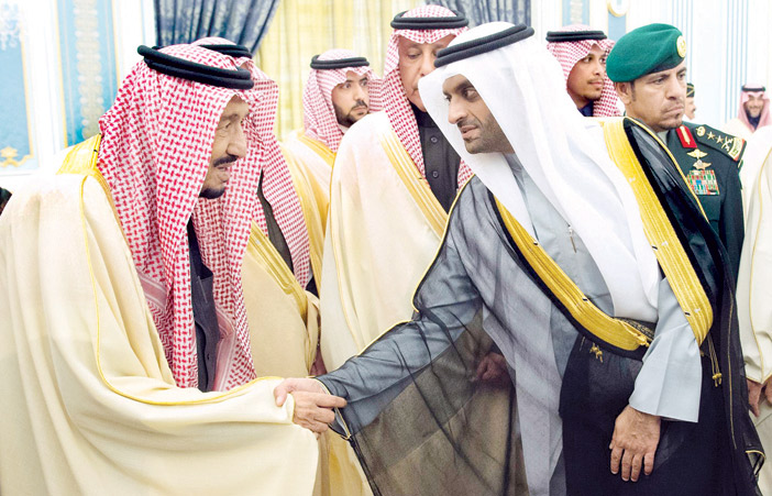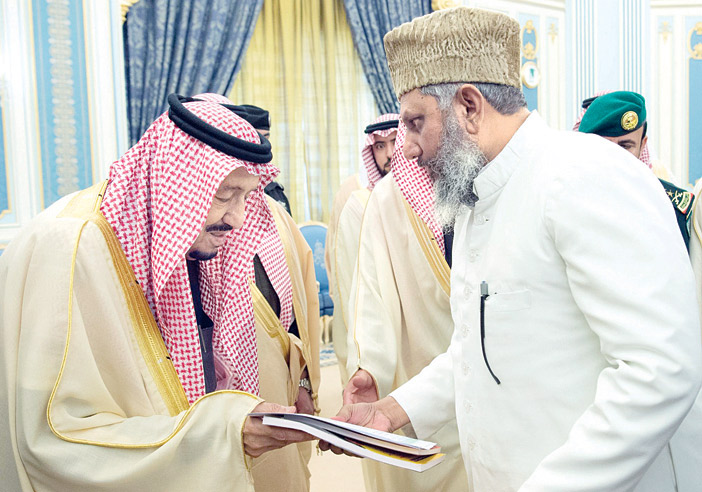 استقبل خادم الحرمين الشريفين الملك سلمان بن عبدالعزيز آل سعود -حفظه الله- في قصر اليمامة بالرياض أمس ضيوف المهرجان الوطني للتراث والثقافة «الجنادرية 33» من المفكرين والأدباء. وبدأ حفل الاستقبال بتلاوة آيات من الذكر الحكيم. وقد ألقى خادم الحرمين الشريفين الملك سلمان بن عبدالعزيز آل سعود -أيده الله- خلال الاستقبال الكلمة التالية: «بسم الله الرحمن الرحيم، الحمد لله رب العالمين، والصلاة والسلام على نبينا محمد وعلى آله وصحبه أجمعين. ضيوفنا الكرام أيها الإخوة الحضور السلام عليكم ورحمة الله وبركاته. أرحب بكم ضيوفاً على المملكة العربية السعودية في المهرجان الوطني للتراث والثقافة في دورته الثالثة والثلاثين، كما أرحب بمشاركة الجمهورية الإندونيسية الشقيقة ضيف شرف هذه الدورة. إن هذا المهرجان يجسد تراث المملكة، ويعكس تنوع التراث في بلادنا، ويسهم في توعية الأجيال الشابة بهذا التراث، كما يسهم المهرجان في تعزيز التواصل الثقافي العالمي، وما وجودكم هنا إلاَّ دليل على ذلك. تمثل الثقافة بمفهومها الشامل قاسماً مشتركاً أساسياً بين شعوب العالم وعاملاً مهماً لتعزيز الأمن والسلم وترسيخ مفهوم التعايش والحوار العالمي من أجل مستقبل أفضل. أرحب بكم مجدداً في المملكة العربية السعودية، متمنياً لكم جميعاً التوفيق. والسلام عليكم ورحمة الله وبركاته».